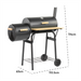 An integrated cooking thermometer on the lid displays the temperature, which can be controlled by adjusting the vent located on the side of the smoking chamber.