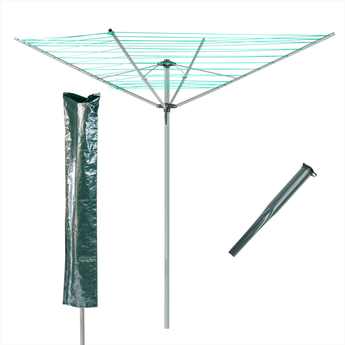 KCT 4 Arm Outdoor Rotary Washing Clothes Line - 50m Drying Area - With Ground Spike and Protective Cover