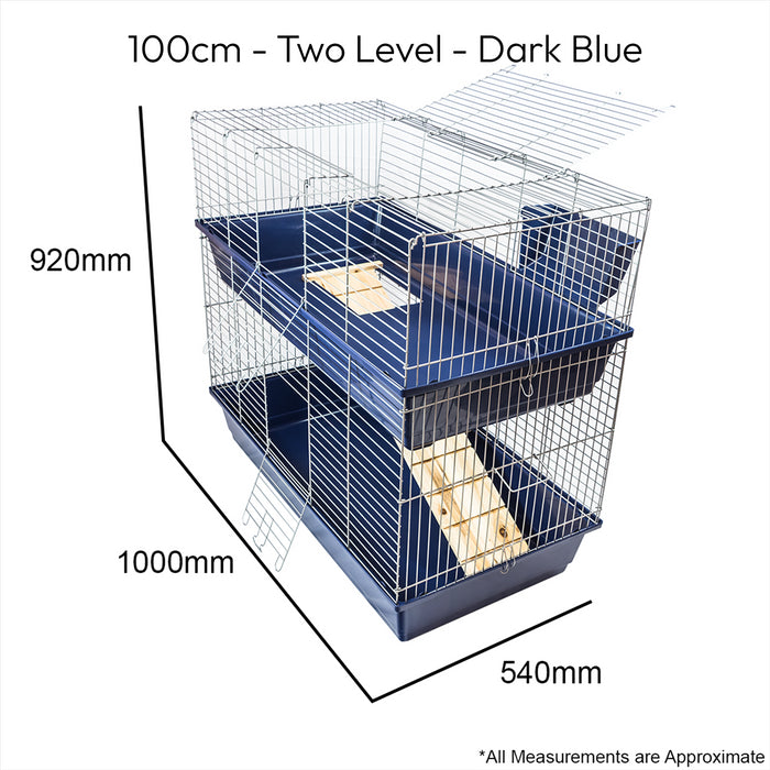 - Front and top located access doors. 100cm 2 Tier Cage. Available in 2 Colours. Ideal for small animals like Rabbits, Gerbils, Rodents and Guinea Pigs.