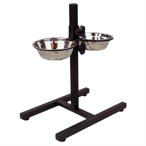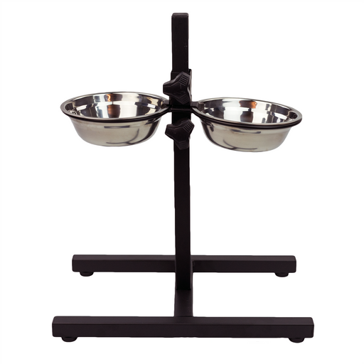 Medium Adjustable Pet Stand with 2 Bowls. With an easy to adjust central pole, the Adjustable Stand with 2 bowls is a perfect feeding station for...