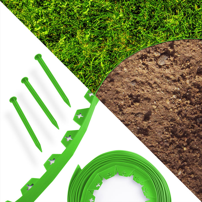 10-50 Metre Green Flexible Plastic Lawn Edging Grass Border with Pegs