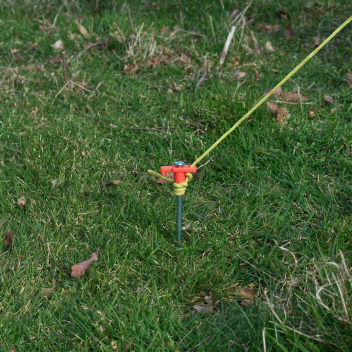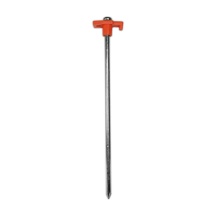 These heavy duty galvanised steel tent pegs are designed to penetrate hard ground. Each peg has a durable plastic head fixture which allows you to secure your nets, and guide ropes, keeping them secure.