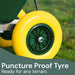 Each Wheelbarrow has 2 puncture proof durable tyres that, unlike single wheel designs, creates greater stability when in use. The front end has the security of 2 solid puncture proof wheels underneath and will ensure even heavy loads can be transported safely without becoming unbalanced or tipping over.