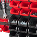 The perfect combination of storage bin organisation and tool storage space, this 46 piece kit comes with 4 wall mountable panels, 28x storage bins in 2 sizes. The 12 larger black bins allow for bigger items to be stored such as small tools and spare parts, where as the 16 smaller red bins are perfect for keeping those tiny screws and fittings safe. Also included is 1 medium attachable tool holder, 1 small attachable tool holder, 2 attachable eight-tier hanging racks, and 10 attachable hooks.