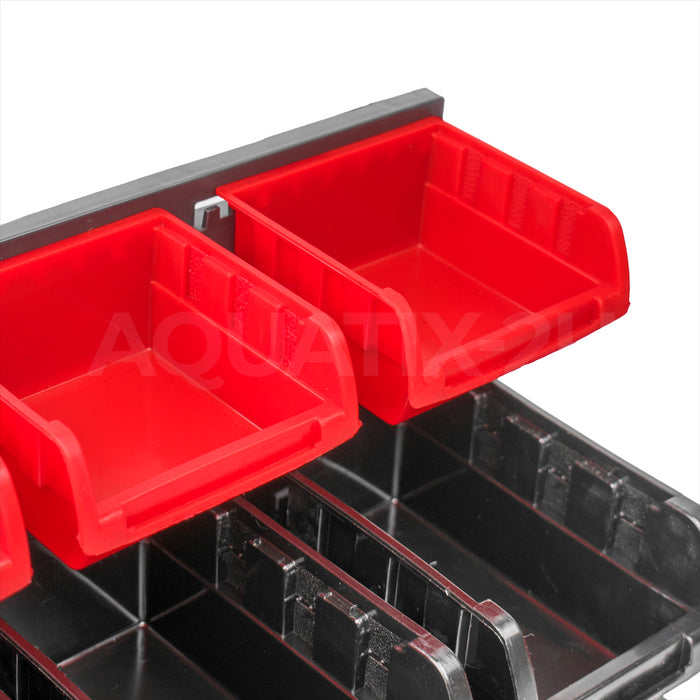 - Expanded Storage - Each unit comes with a selection of small and large bins that can hold small fittings like screws and spare parts as well as racks to fit tools