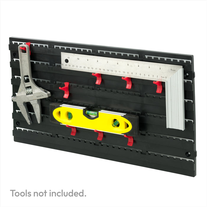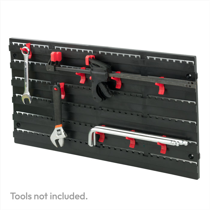Organise your tools, parts, accessories, and more with the KCT 54 Piece wall mounted tool rack and storage organiser. The 54 Piece tool rack is wall mountable (wall fittings included) and comes with accessory combinations to help organise your tools and fittings.