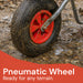 The Wheelbarrows pneumatic (air filled) wheel ensures it is a stable piece of equipment and gives added manoeuvrability around different levels and terrains around your garden. The bucket is supported on sturdy support frames and the handles are protected with soft rubber to make it easier and more comfortable to move.