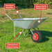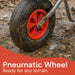 The Wheelbarrows pneumatic (air filled) wheel ensures it is a stable piece of equipment and gives added maneuverability around different levels and terrains around your garden.