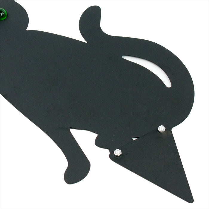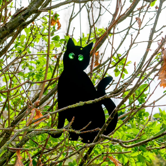 - Reflective Glass Eyes - Each cat shape is made of a painted black metal and has 2 piercing green marble glass eyes that reflect enough to scare off other cats and predators.