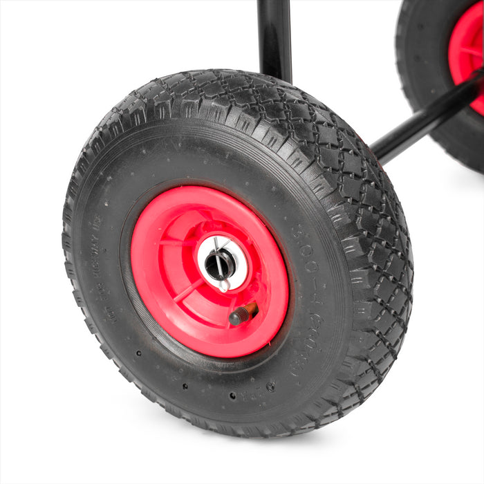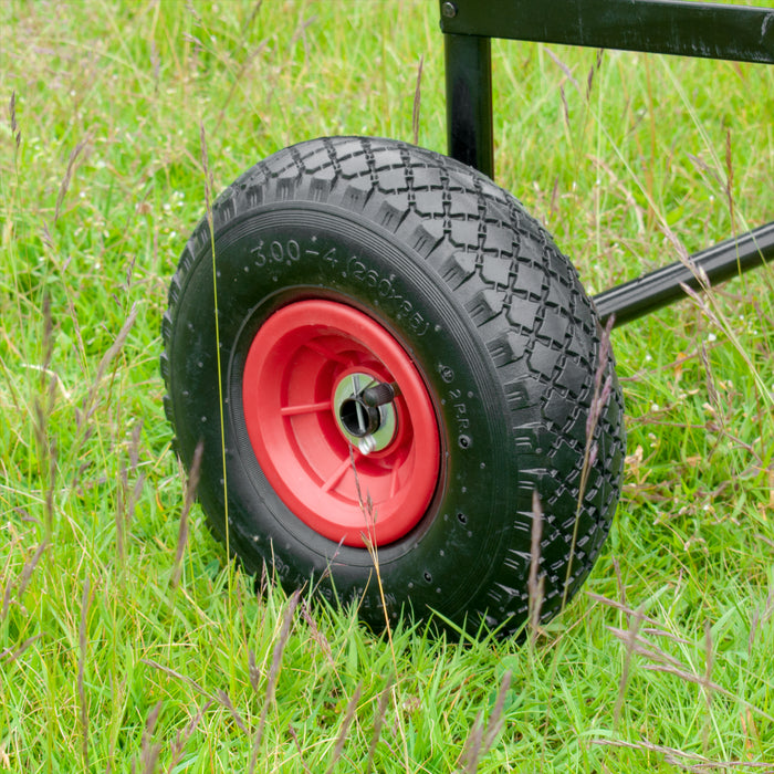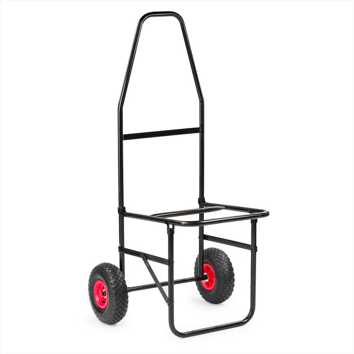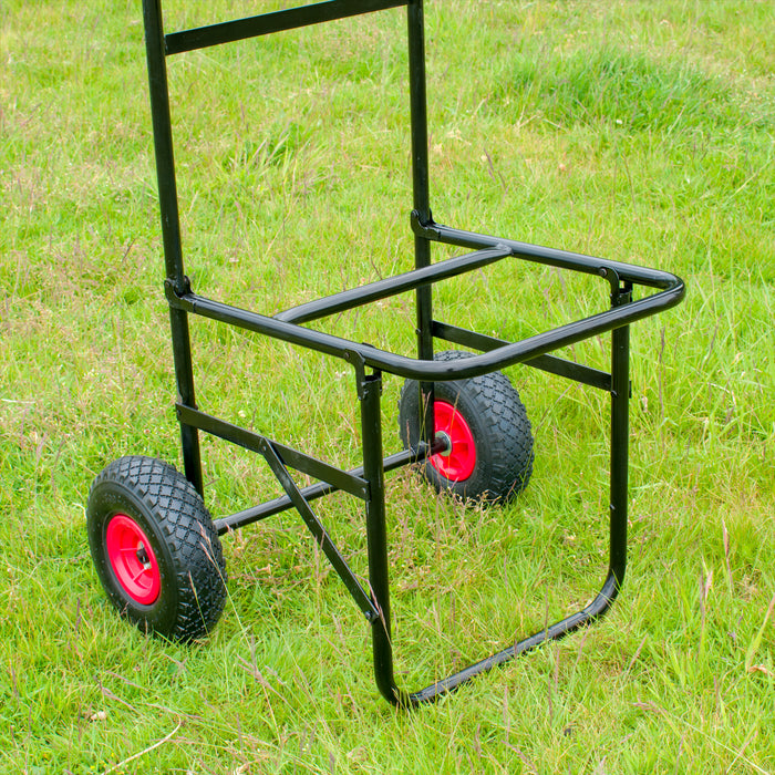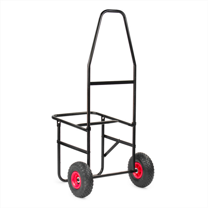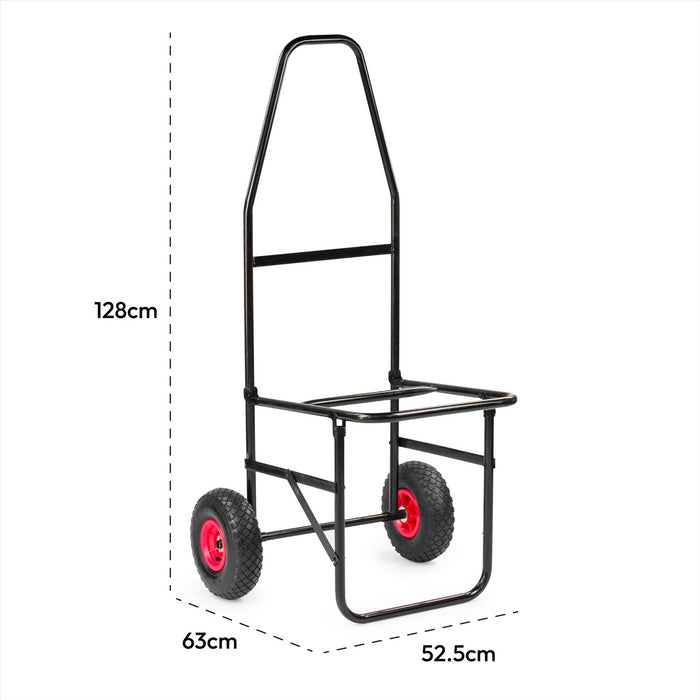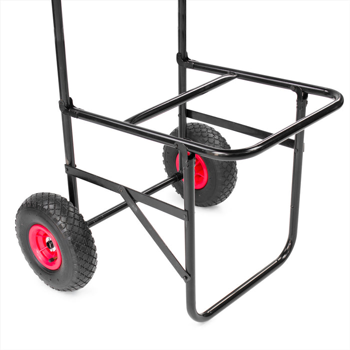 A twin-wheel pneumatic design makes it easy to manoeuvre, and the large wheels provide better traction on difficult terrain. Strong and lightweight with ample space for storing bags, boxes and rods.