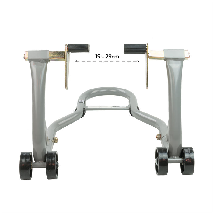 - Adjustable Cradle Width - The paddock stand features adjustable fork cradles with a width range of 19cm - 29cm, making it compatible with a variety of sport bikes and cruisers.