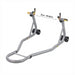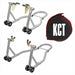 The KCT Rear Lift Stand comes equipped with dual spool cradles that fit beneath your bike's swing arm spools for a stable and secure lift. It offers adjustable cradle widths (21.6cm to 34.8cm), accommodating various bike models and sizes, making it perfect for tasks like chain maintenance and tire changes.