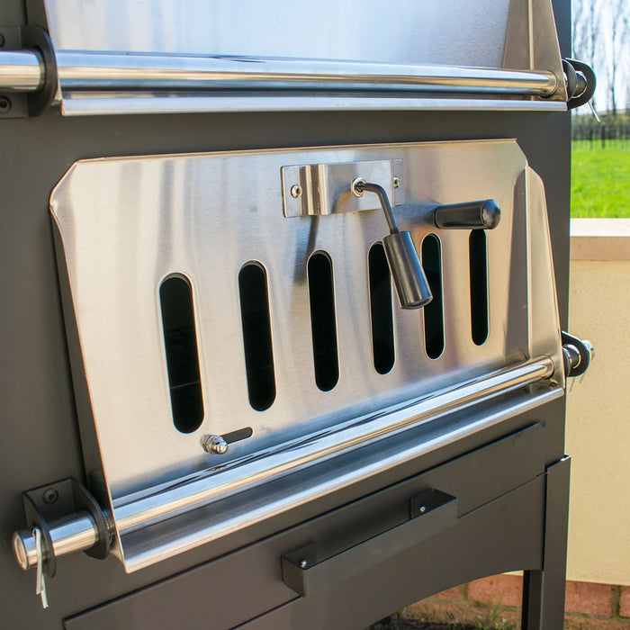 Whether you are having a nice family get together or hosting a party, the Pizza Oven will make a perfect centrepiece for any outdoor event. The top level features a generously sized cooking grill for baking with the included Pizza Stone, smoking and cooking various meats and veg while the lower section provides you with plenty of space to throw in your charcoal or untreated wood fuel.