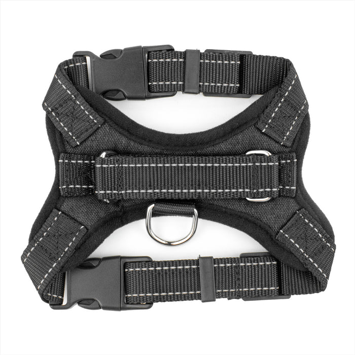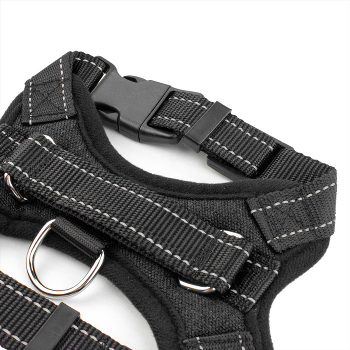 Also featured is a sturdy handle on the back of the harness to allow for close control of your pet which can be very useful in training or overall control of your dog. The harness features reflective stitching for increased visibility on your pet which increases their safety at night.