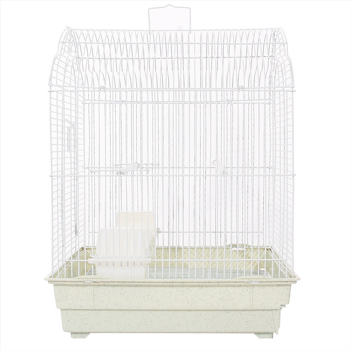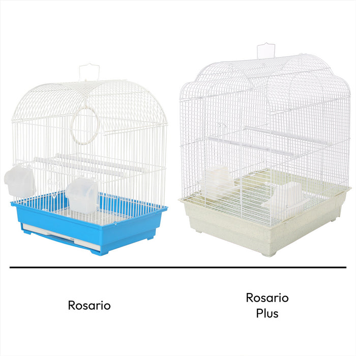 The Rosario Plus Small Bird Cage is an easy to assemble, compact, light weight, galvanized metal cage. The Rosario Plus Cage comes with a white plastic base complete with a slide out litter tray which allows for the cage to be easily cleaned and maintained.